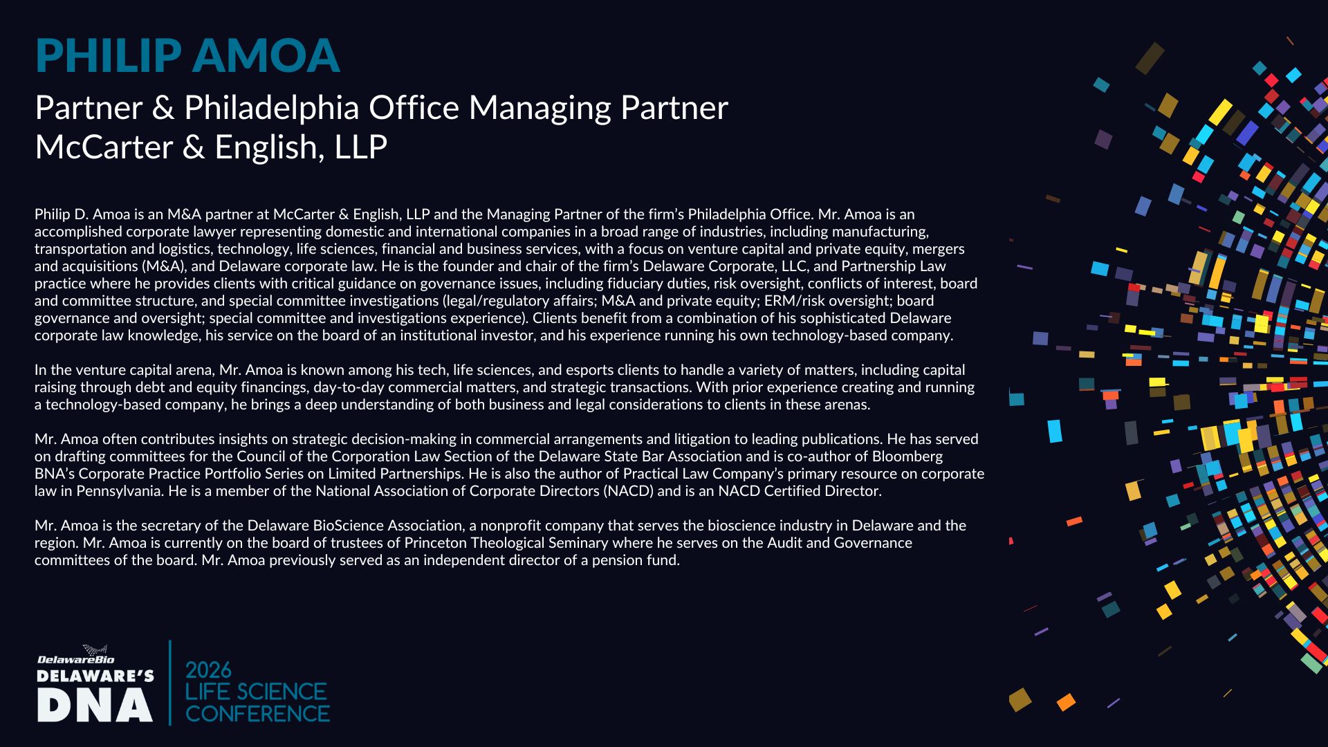 Delaware’s world class legal community has unrivaled expertise advising life science companies of every size and stage. In this two-session track, legal and business experts will offer practical insights on critical considerations for early- and mid-stage life science companies – from smart IP protection to decision making around fundraising and M&A. These important sessions will share strategies on mitigating risk, attracting capital and scaling with confidence.
